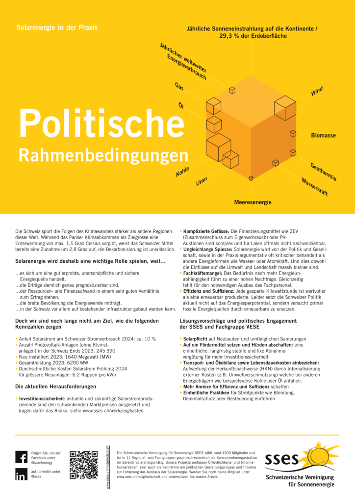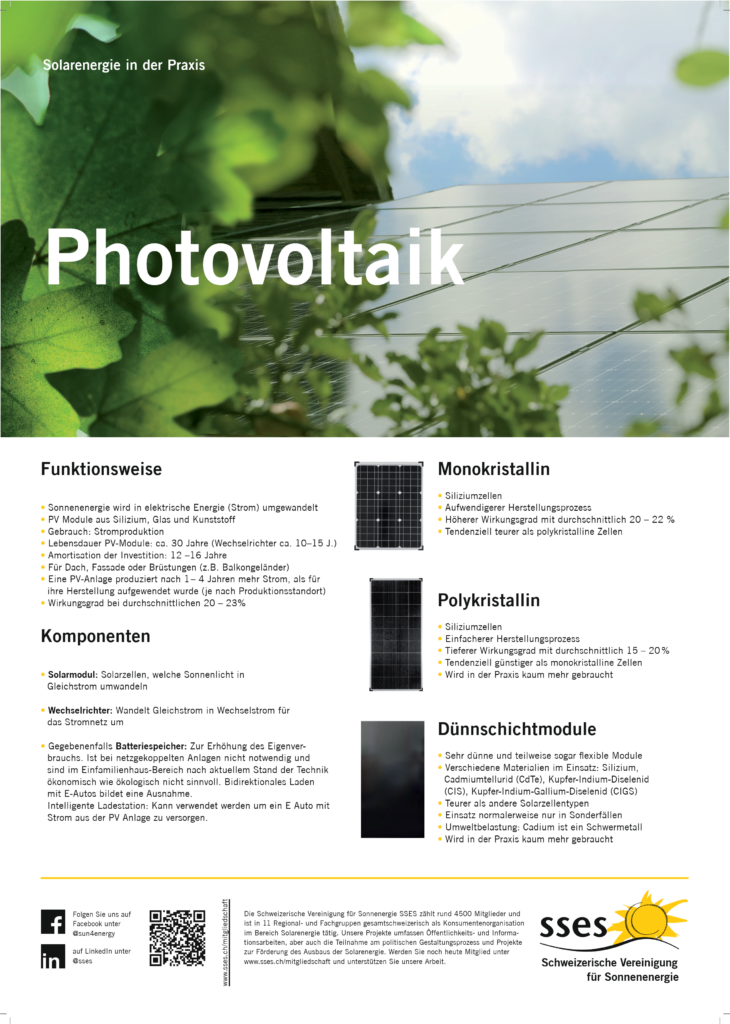 Die SSES hat im Sommer 2022 und Herbst 2025 Infoplakate hergestellt, um auf einfache Art und Weise über Solarenergie zu Informieren.